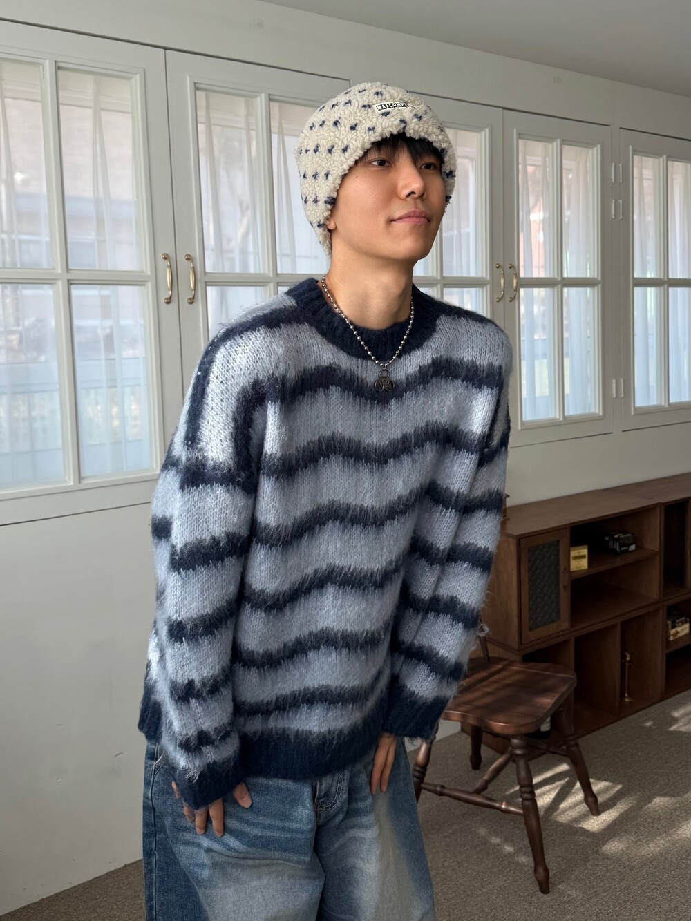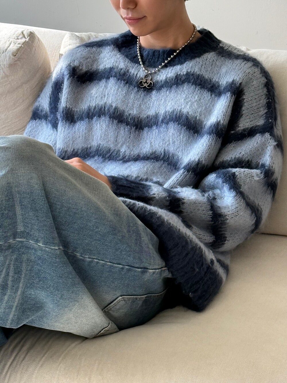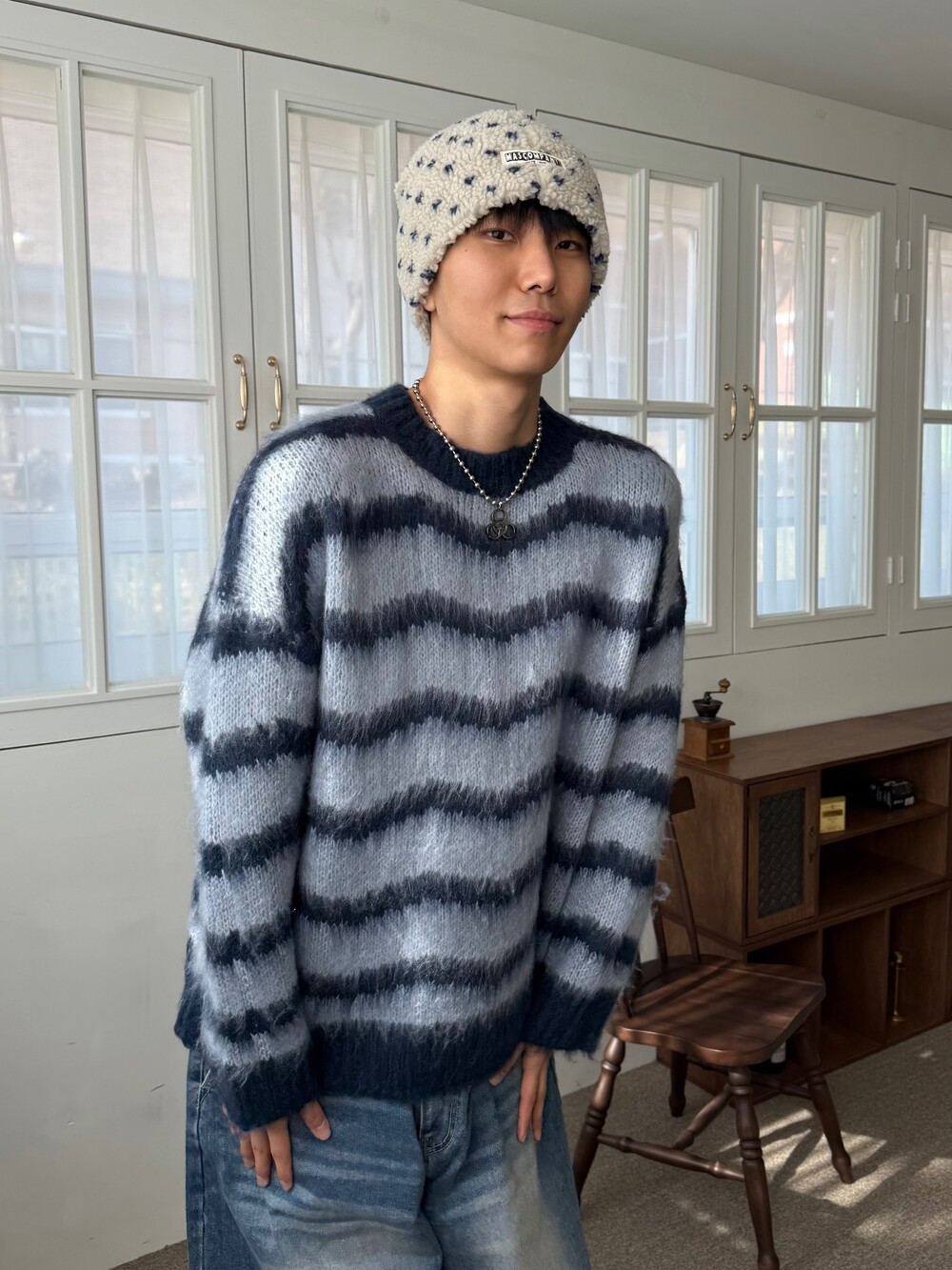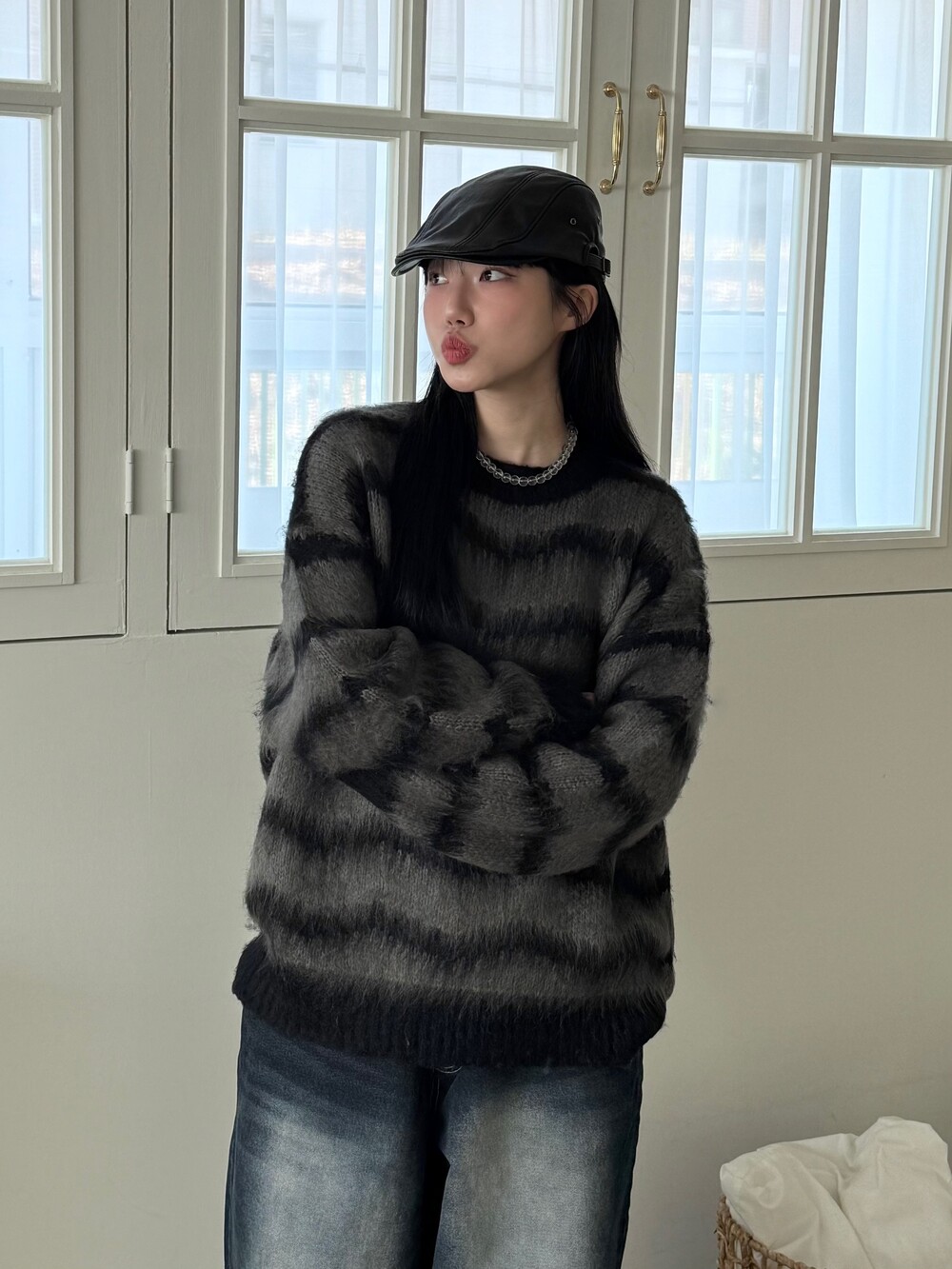 부드러운 브러쉬 물결 니트에요! 평소 피부가 예민하여 아무리 예뻐도 니트가 따가우면 못 입는분들 계실거에요. 그런분들을 위해 데리고 온 제품이라고 말씀드리고 싶습니다! 개인적으로 커플분들이 시밀러룩 느낌으로도 착용하시면 너무 좋을듯 해요:) 날이 풀리기 전까지 주구장창 입어주시 좋은 두께감 이며 크게 다른 레이어드 없이도 그날의 ootd가 꽉 차게 느껴지게끔 만들어줄 수 있는 니트 랍니다. 데님팬츠랑만 툭 입어줘도 넘 예쁘지 않나요!