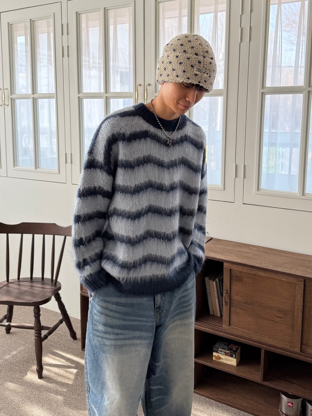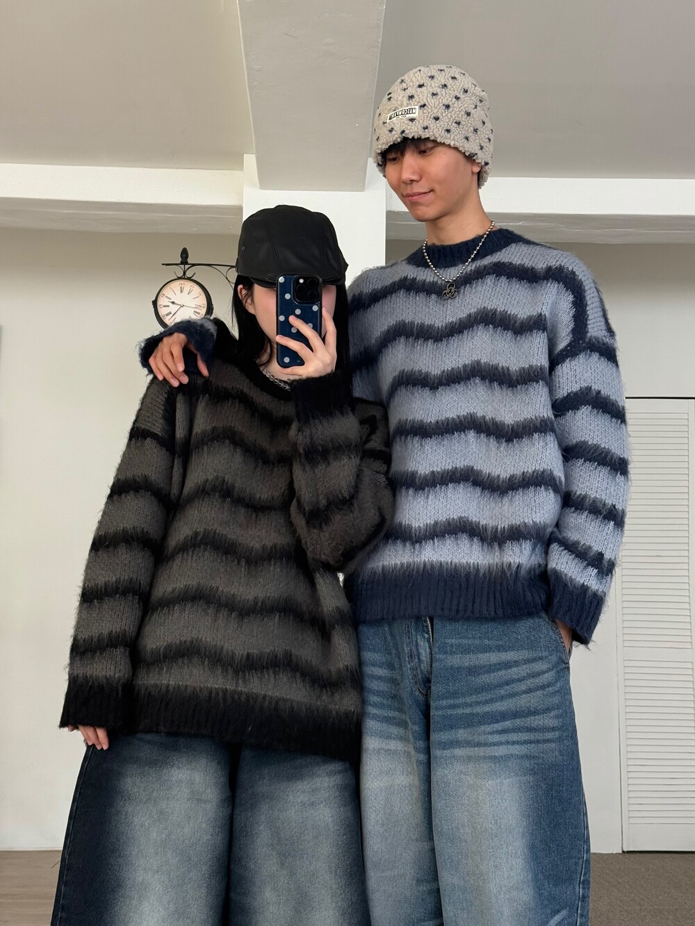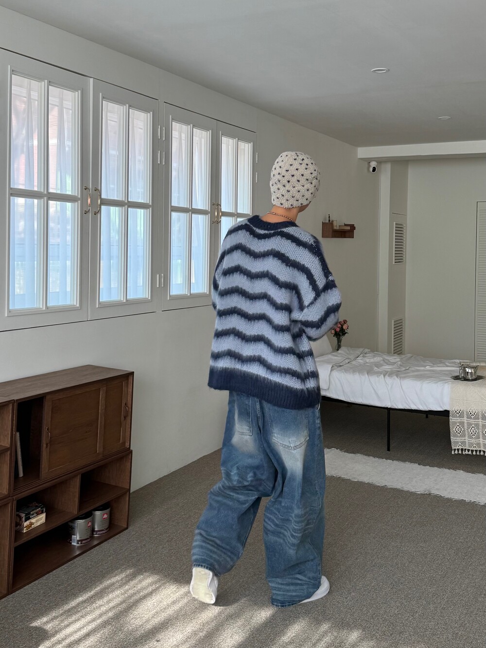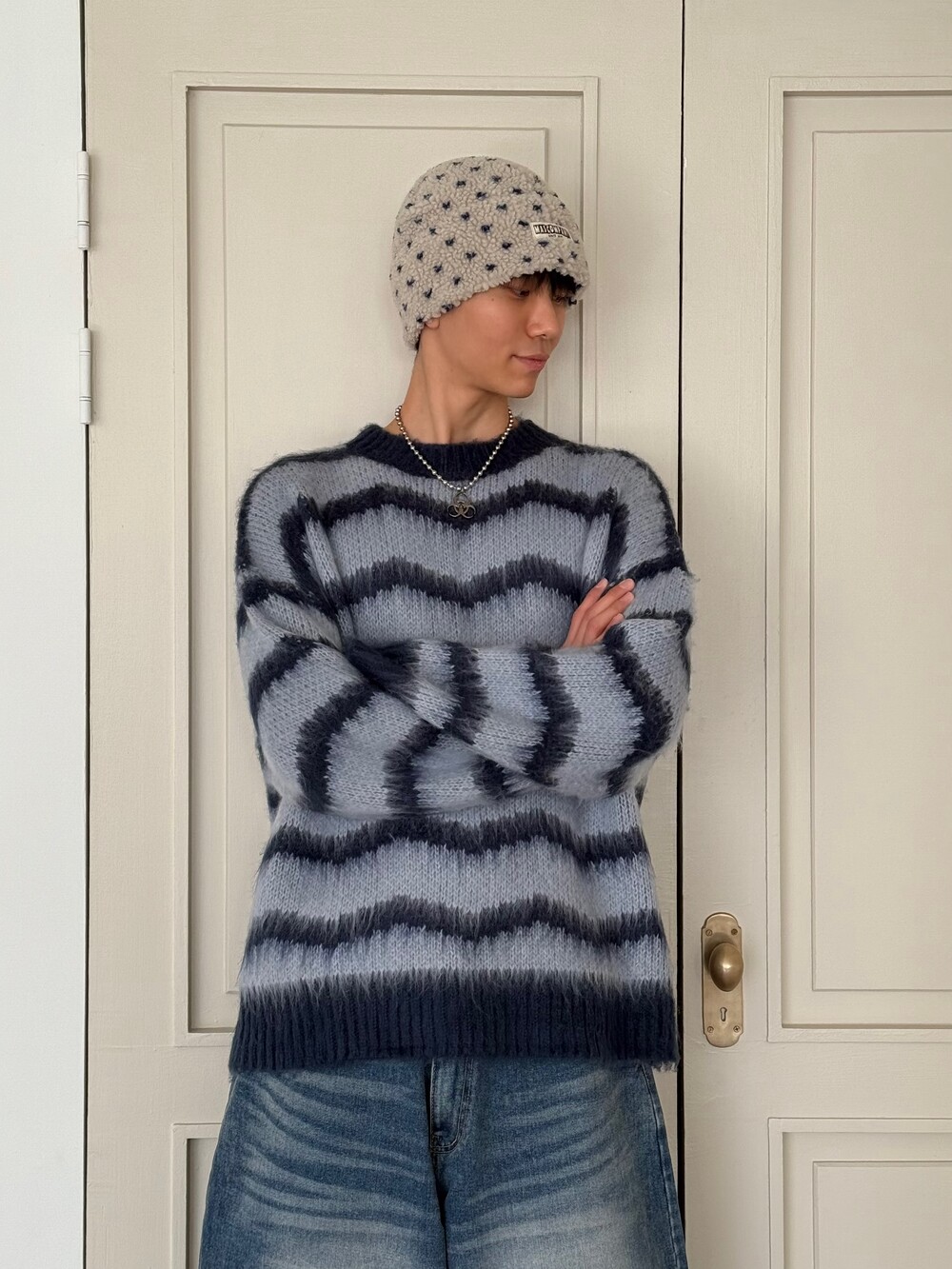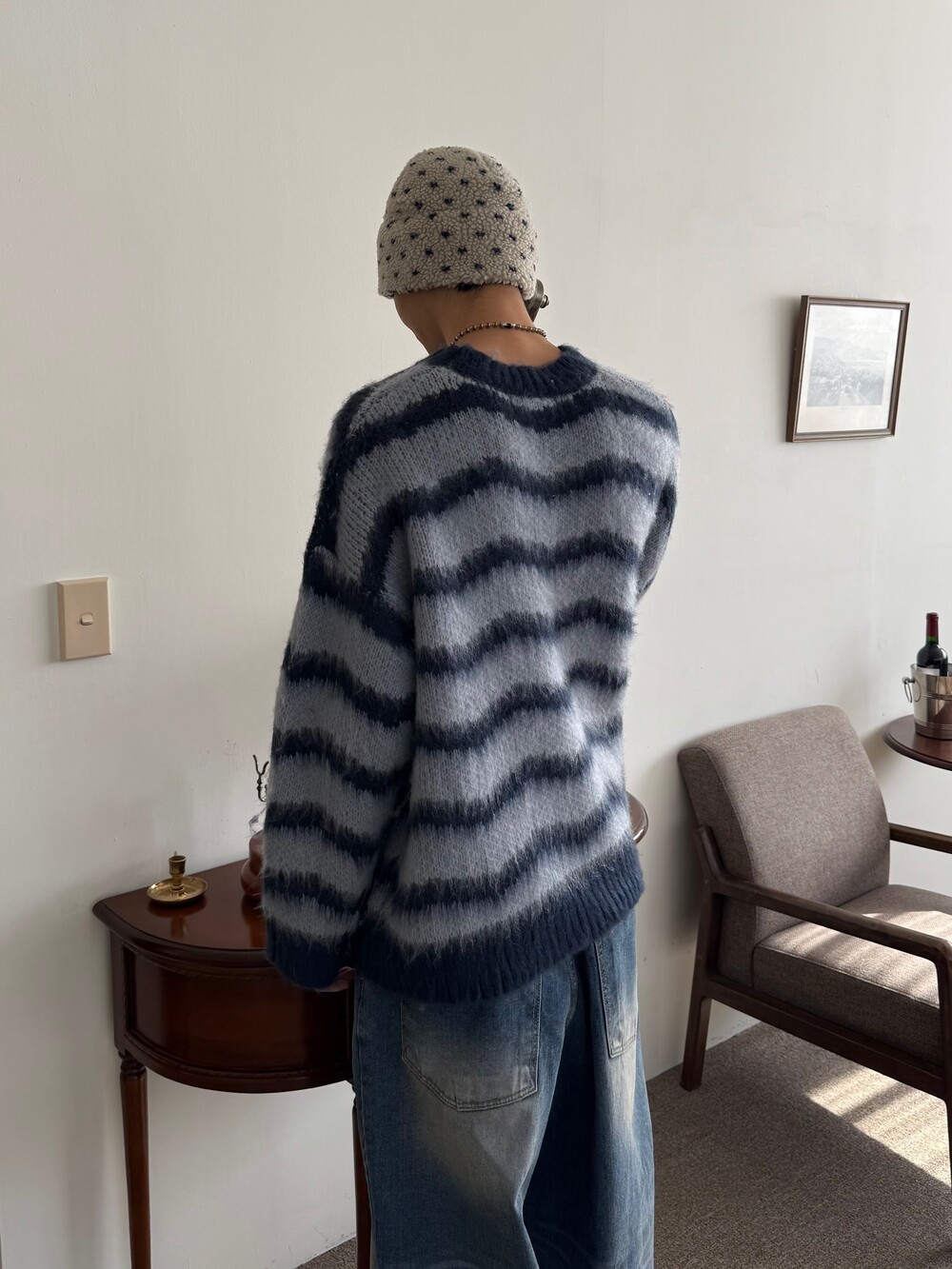 부드러운 브러쉬 물결 니트에요! 평소 피부가 예민하여 아무리 예뻐도 니트가 따가우면 못 입는분들 계실거에요. 그런분들을 위해 데리고 온 제품이라고 말씀드리고 싶습니다! 개인적으로 커플분들이 시밀러룩 느낌으로도 착용하시면 너무 좋을듯 해요:) 날이 풀리기 전까지 주구장창 입어주시 좋은 두께감 이며 크게 다른 레이어드 없이도 그날의 ootd가 꽉 차게 느껴지게끔 만들어줄 수 있는 니트 랍니다. 데님팬츠랑만 툭 입어줘도 넘 예쁘지 않나요!