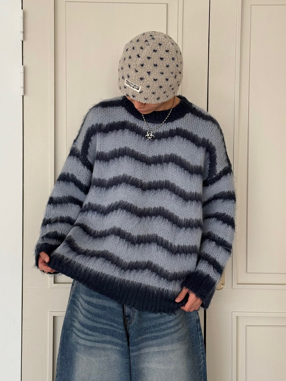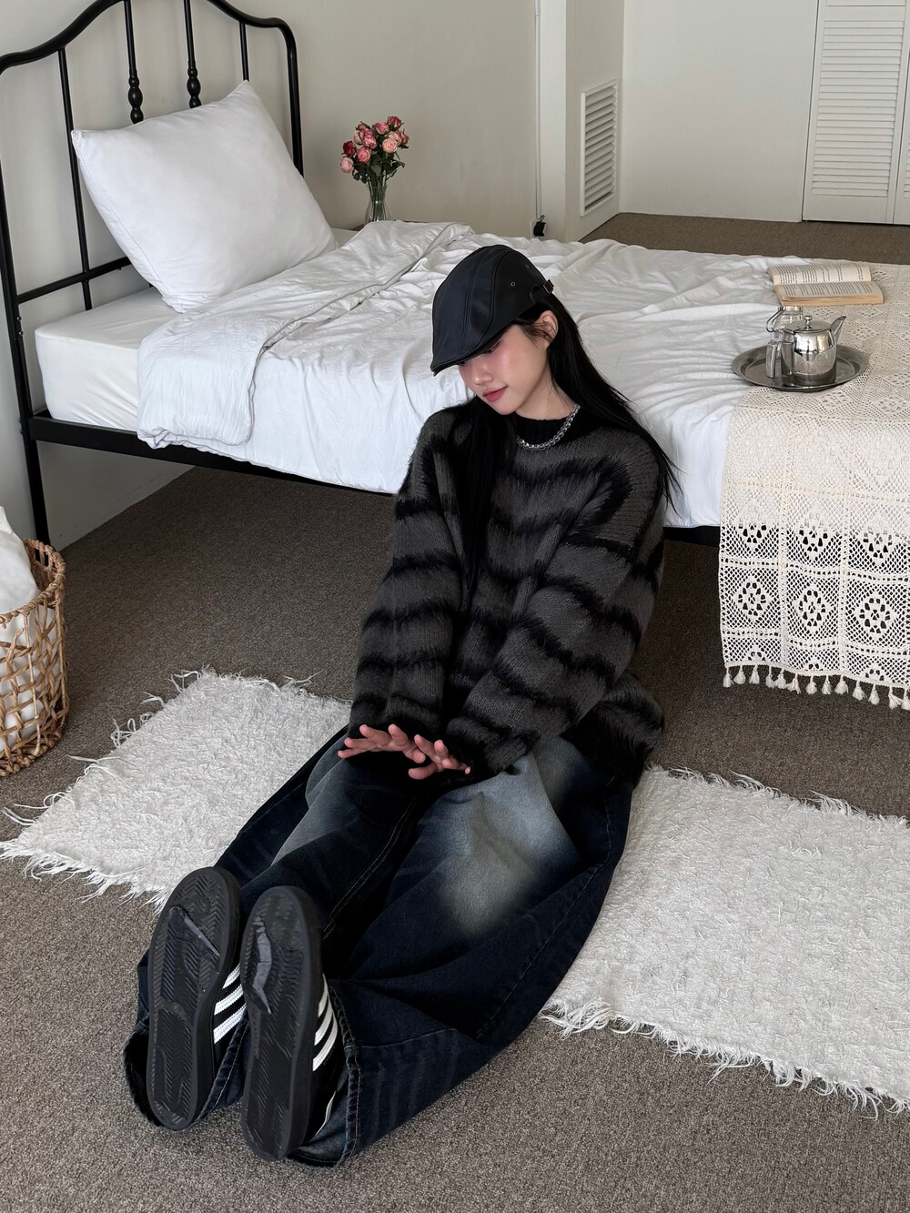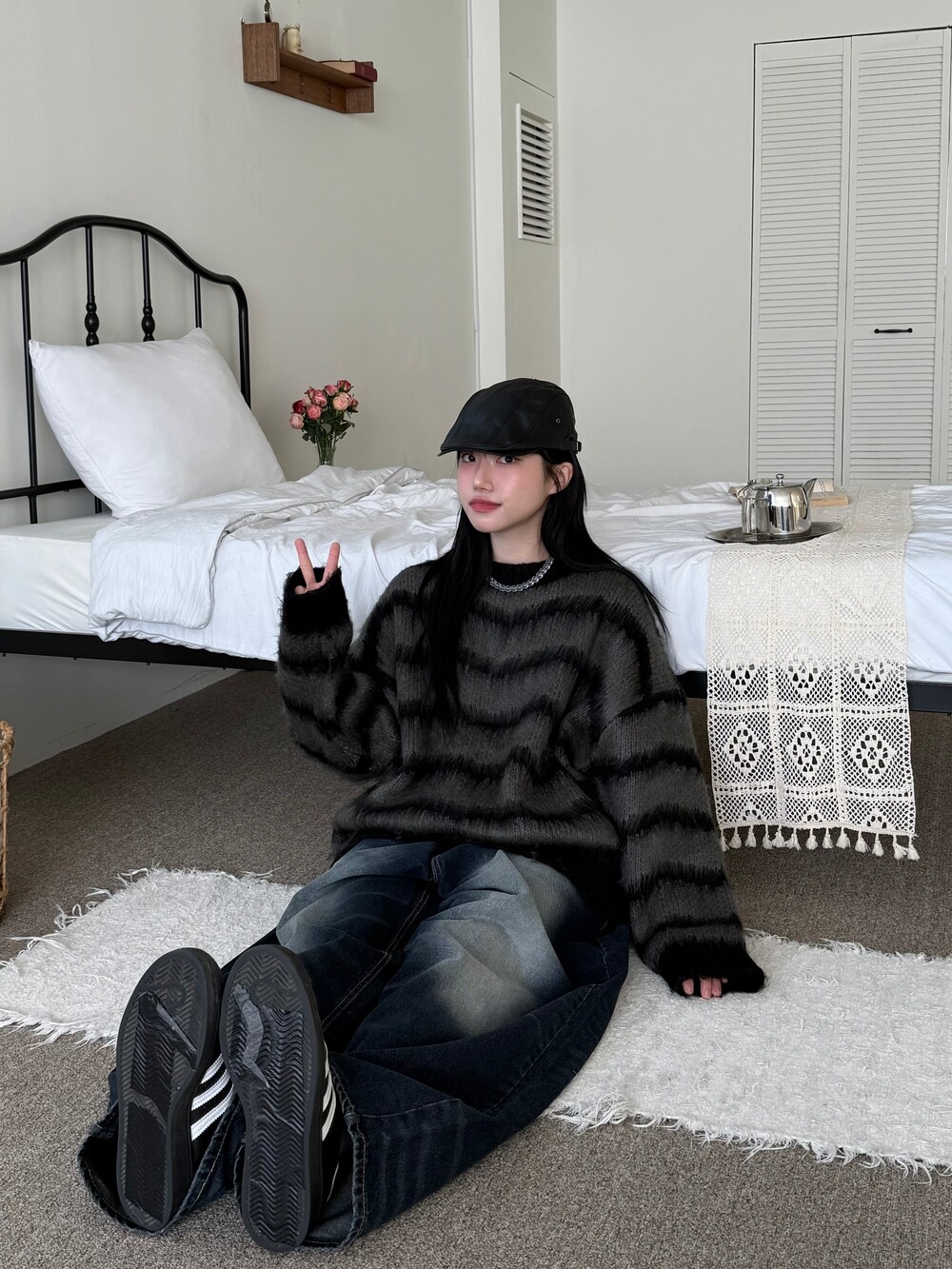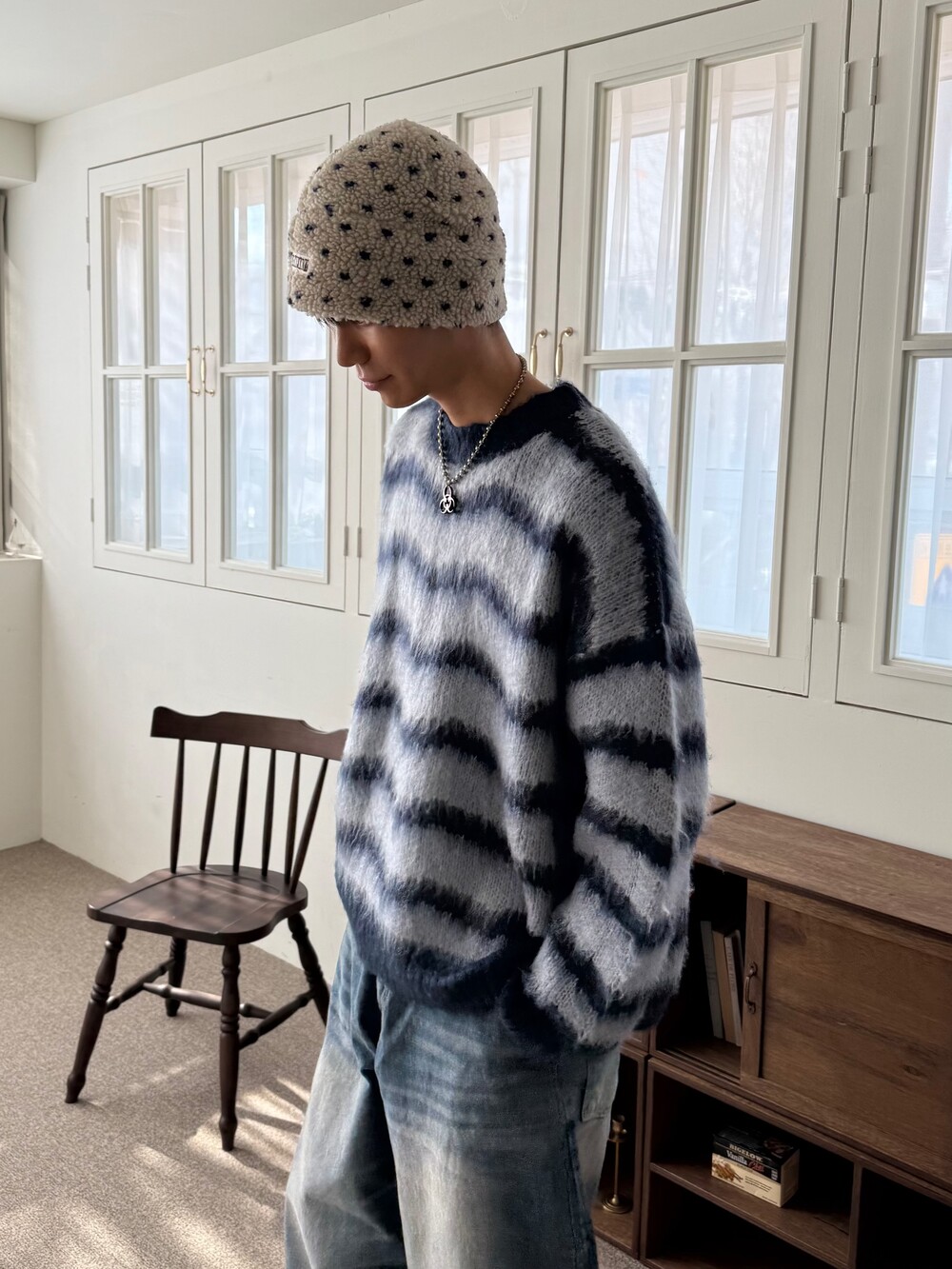 부드러운 브러쉬 물결 니트에요! 평소 피부가 예민하여 아무리 예뻐도 니트가 따가우면 못 입는분들 계실거에요. 그런분들을 위해 데리고 온 제품이라고 말씀드리고 싶습니다! 개인적으로 커플분들이 시밀러룩 느낌으로도 착용하시면 너무 좋을듯 해요:) 날이 풀리기 전까지 주구장창 입어주시 좋은 두께감 이며 크게 다른 레이어드 없이도 그날의 ootd가 꽉 차게 느껴지게끔 만들어줄 수 있는 니트 랍니다. 데님팬츠랑만 툭 입어줘도 넘 예쁘지 않나요!