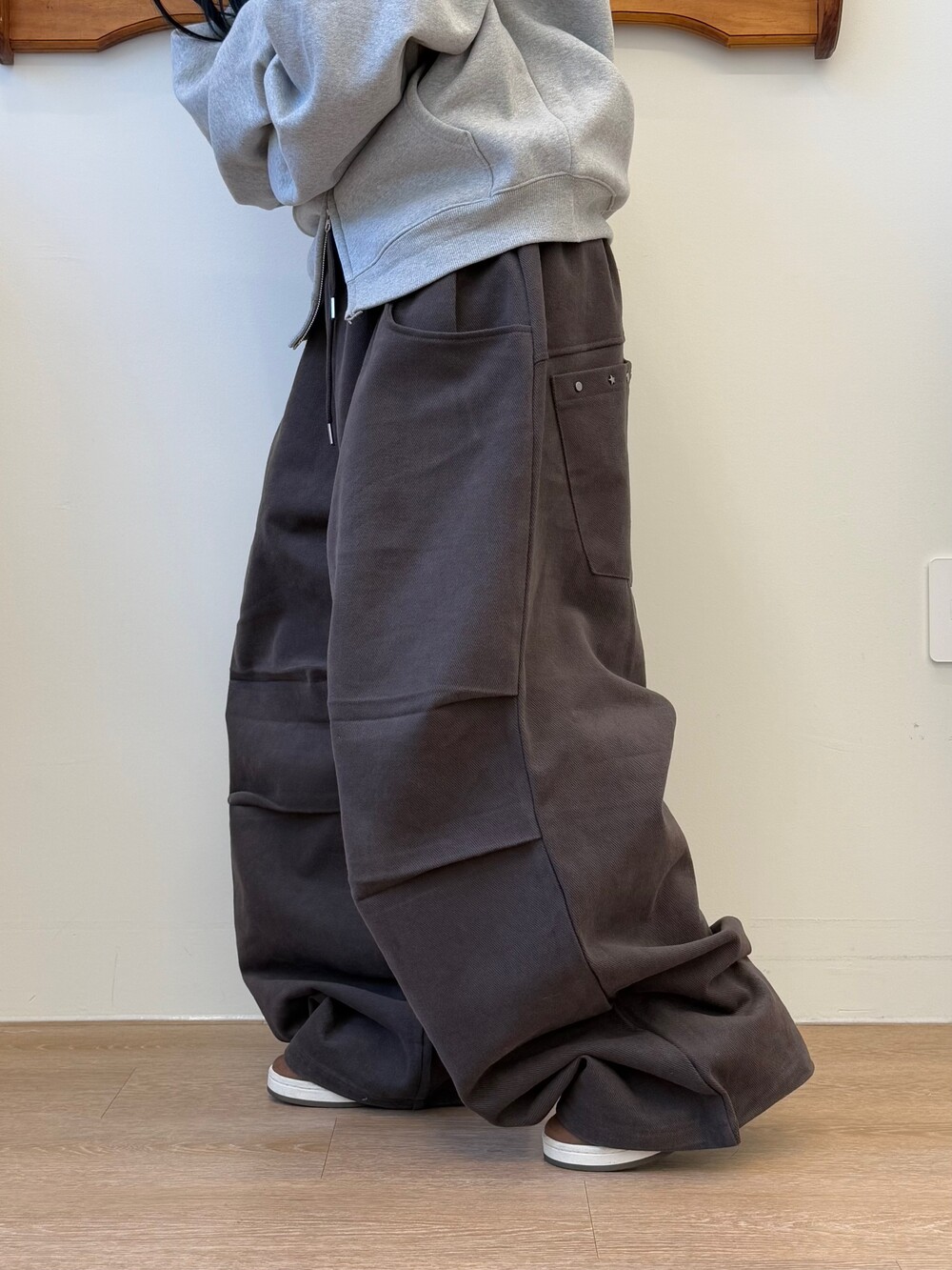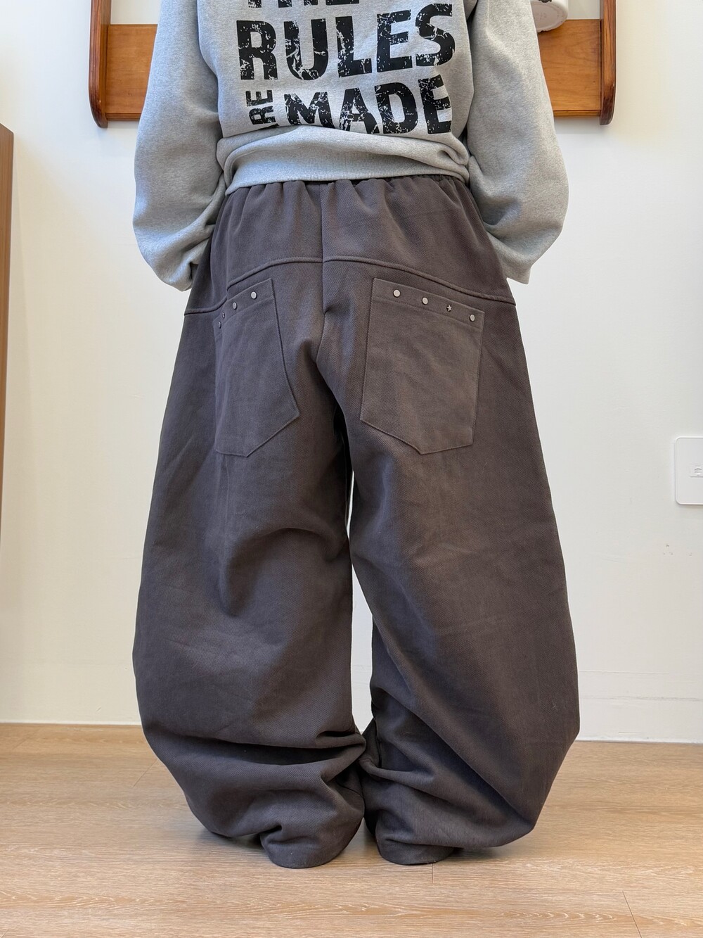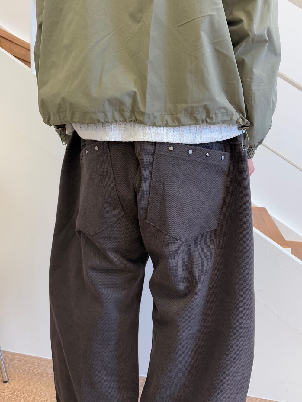 엉덩이에 스터드 디테일이 들어가있어 빈티지한 무드까지 더해진 팬츠에요. 무릎쪽 핀턱디테일로 크게 핏을 잡지 않아도 자연스레 주름이 잡히면서 더욱 스타일리쉬하게 연출하실 수 있습니다. 튼튼한 코튼 100%로 안정적인 실루엣을 유지하며 탄탄 부드러운 텍스쳐 느낌으로 착용해주시기 좋습니다. 후드티,니트,바람막이 등 어떤 상의와도 매치가 좋으며 긴 기장감이라 키가 크신 남성분들 또한 루즈하게 착용가능하며 밑단 스트링이 들어가 있어 키가 작으신 분들도 충분히 끌리지 않게 입으실 수 있습니다.
