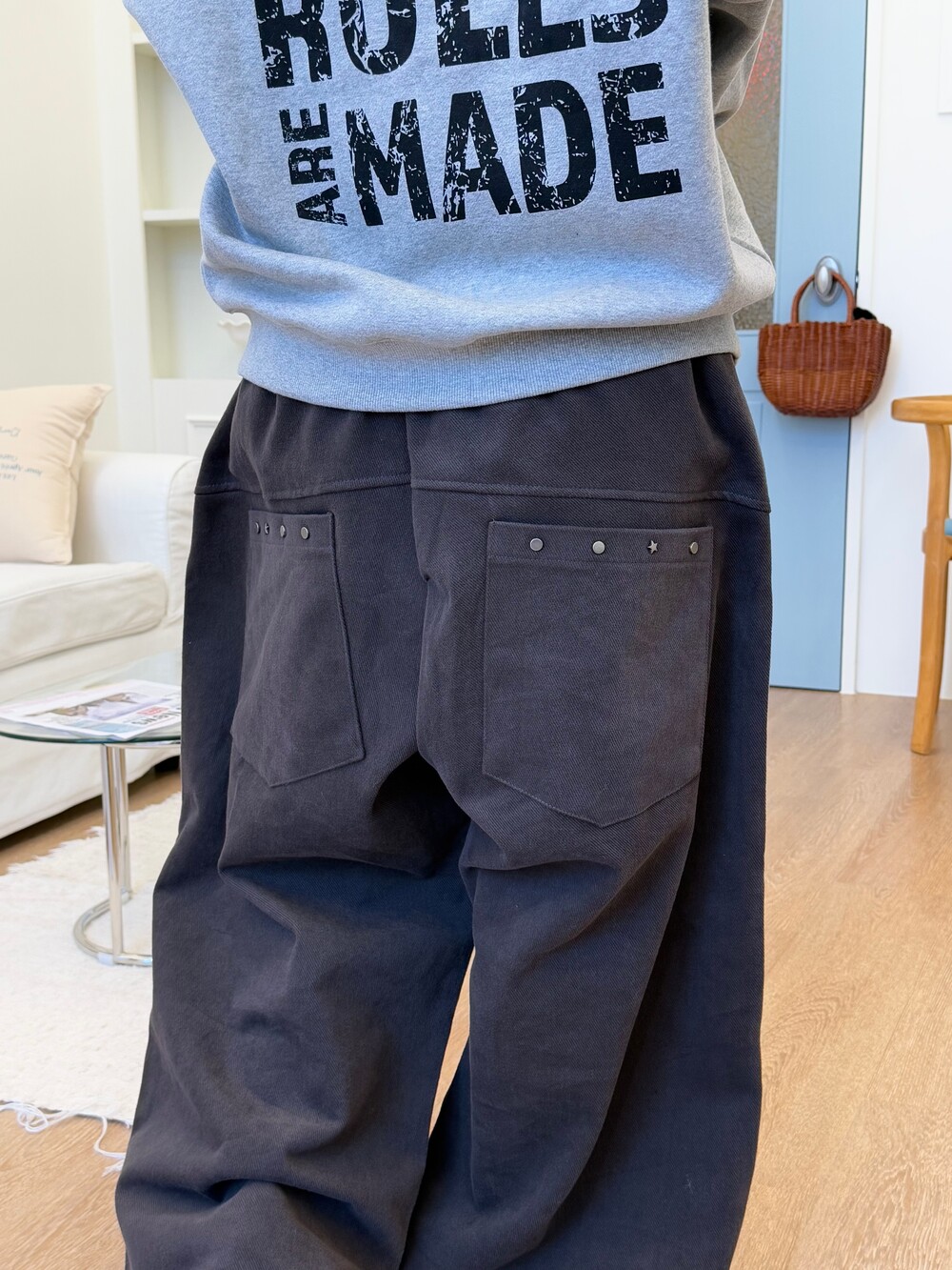 멋스럽게 와이드 실루엣으로 떨어지는 스타 스터드 팬츠 입니다.